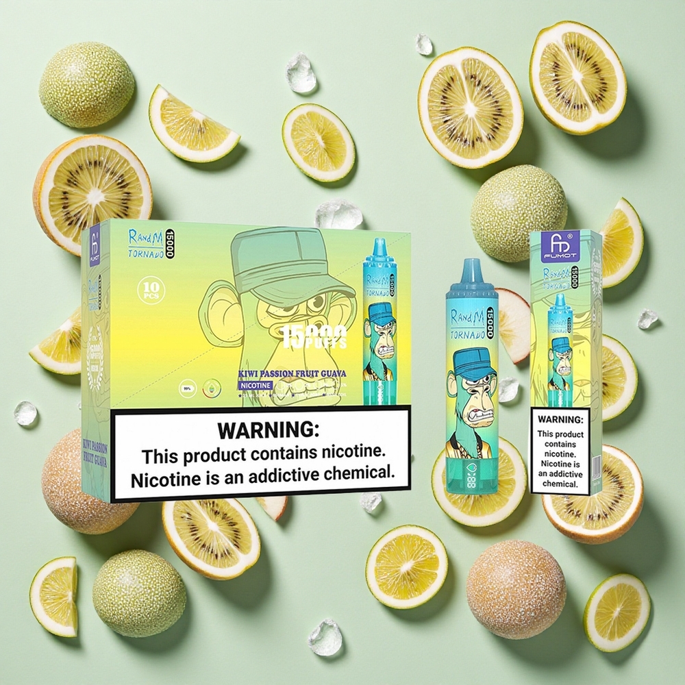 RandM Fumot Tornado 15000 Puffs Rechargeable USB Type-C Kiwi Fruit de la Passion Goyave