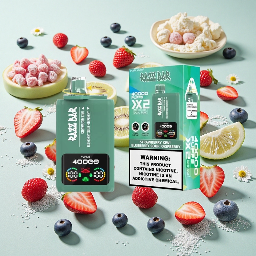 Razz Bar 40000 Bouffées Affichage Écran Fraise Kiwi_Myrtille Framboise Acidulée